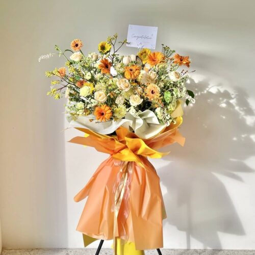 สแตนด์ดอกไม้แสดงความยินดี โทนสีเหลือง-ส้ม – D8