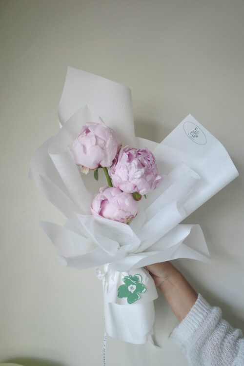 ช่อดอกไม้ดอก Peony สีชมพู – B29 จำนวน 3 ดอก ของร้านดอกไม้ Flowerlab by Chanana สำหรับเป็นดอกไม้แสดงความยินดีหรือมอบให้กับคนสำคัญในโอกาสต่างๆ