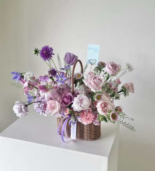 ตะกร้าดอกไม้สด โทนสีม่วง ชมพู- K16