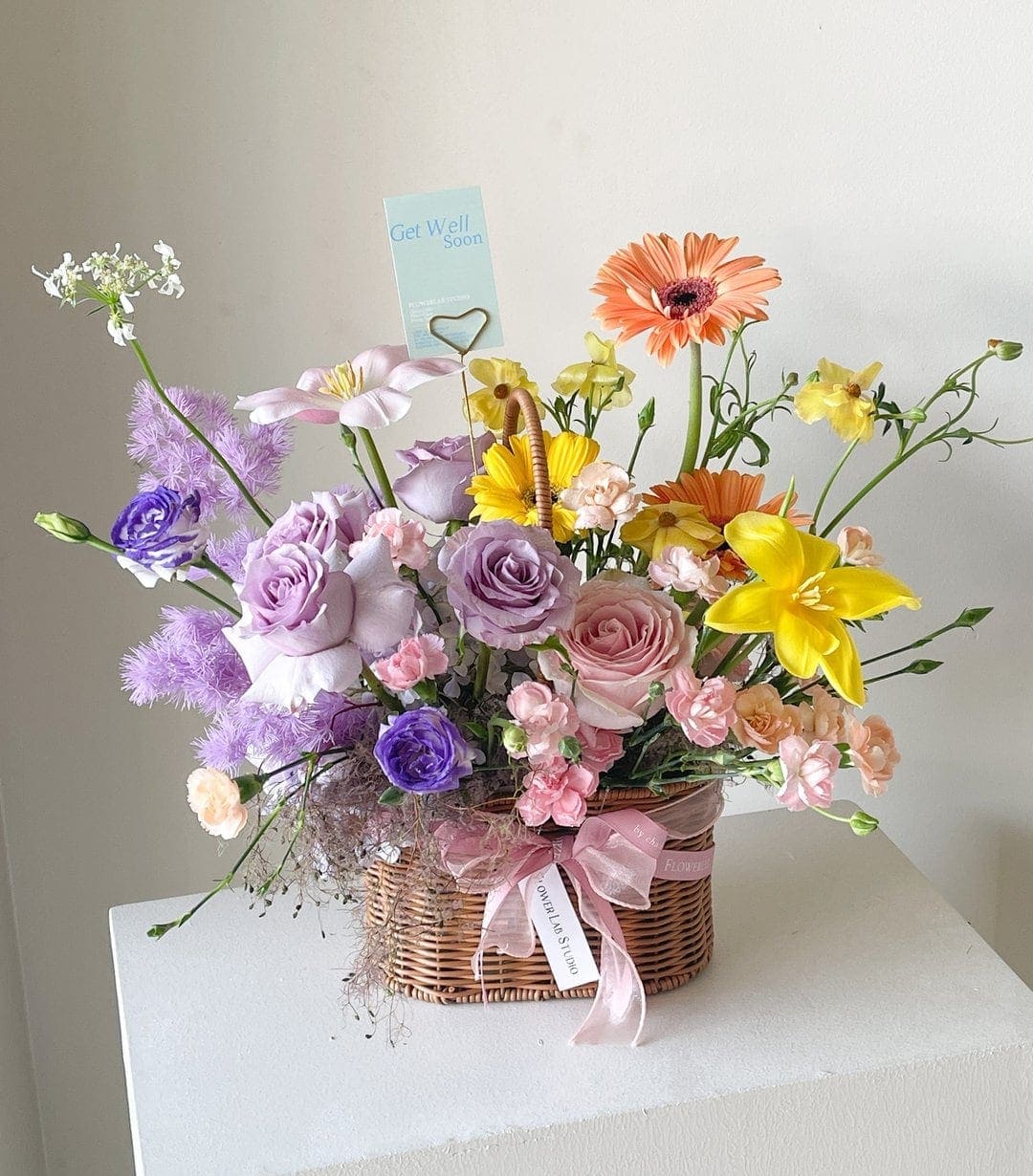 ตะกร้าดอกไม้สด โทนสีพาสเทล – K18 แสดงความยินดีเปิดร้านใหม่ หรือใช้ในโอกาสสำคัญต่างๆ จากร้านดอกไม้ Flowerlab ร้านดอกไม้สาทร ร้านดอกไม้เจริญนคร
