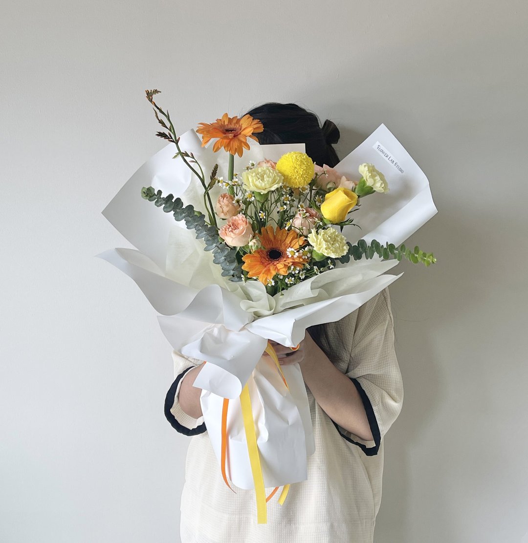 ช่อดอกไม้คละชนิดโทนสีเหลืองส้ม – B57 จากร้านดอกไม้ Flowerlab by Chanana ร้านดอกไม้ย่านเจริญนคร จัดส่ง Delivery ทั่วกรุงเทพฯ