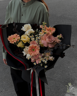 ช่อดอกไม้สด สีชมพู ม่วง และขาว – M02