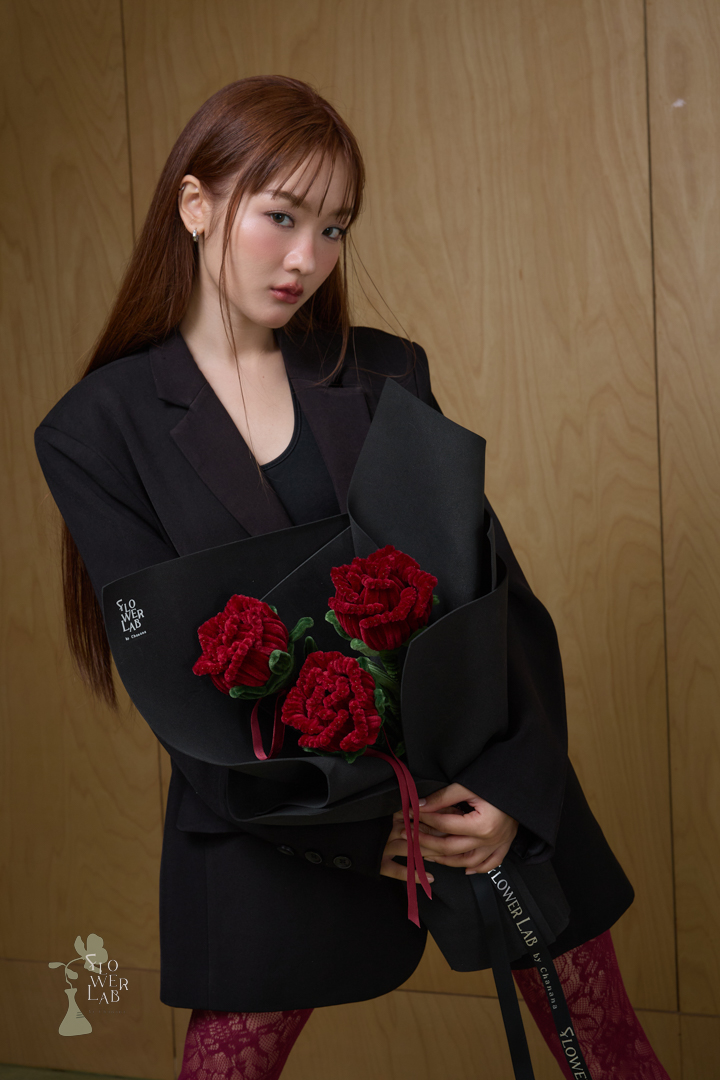 ช่อดอกกุหลาบแดงห่อตาข่ายดำ – L07
